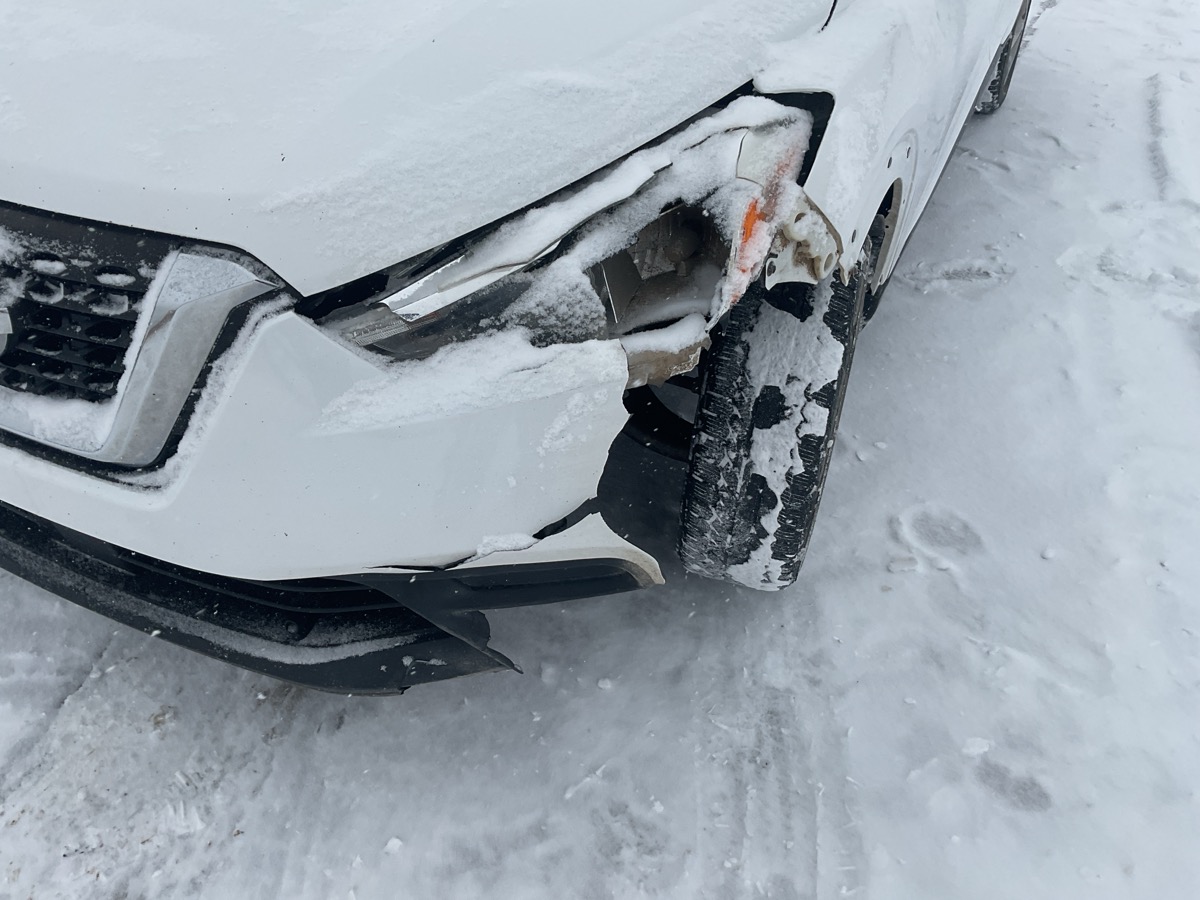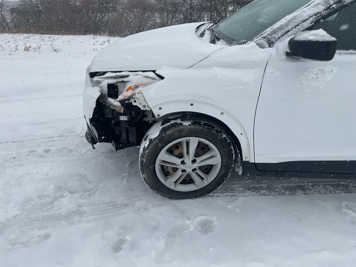 Front bumper and driver side headlight collision damage. Tpms sensor missing or malfunctioning on passenger front, shakes/wobbles from steering wheel above 40 mph, pulls to the left slightly at higher speeds.
