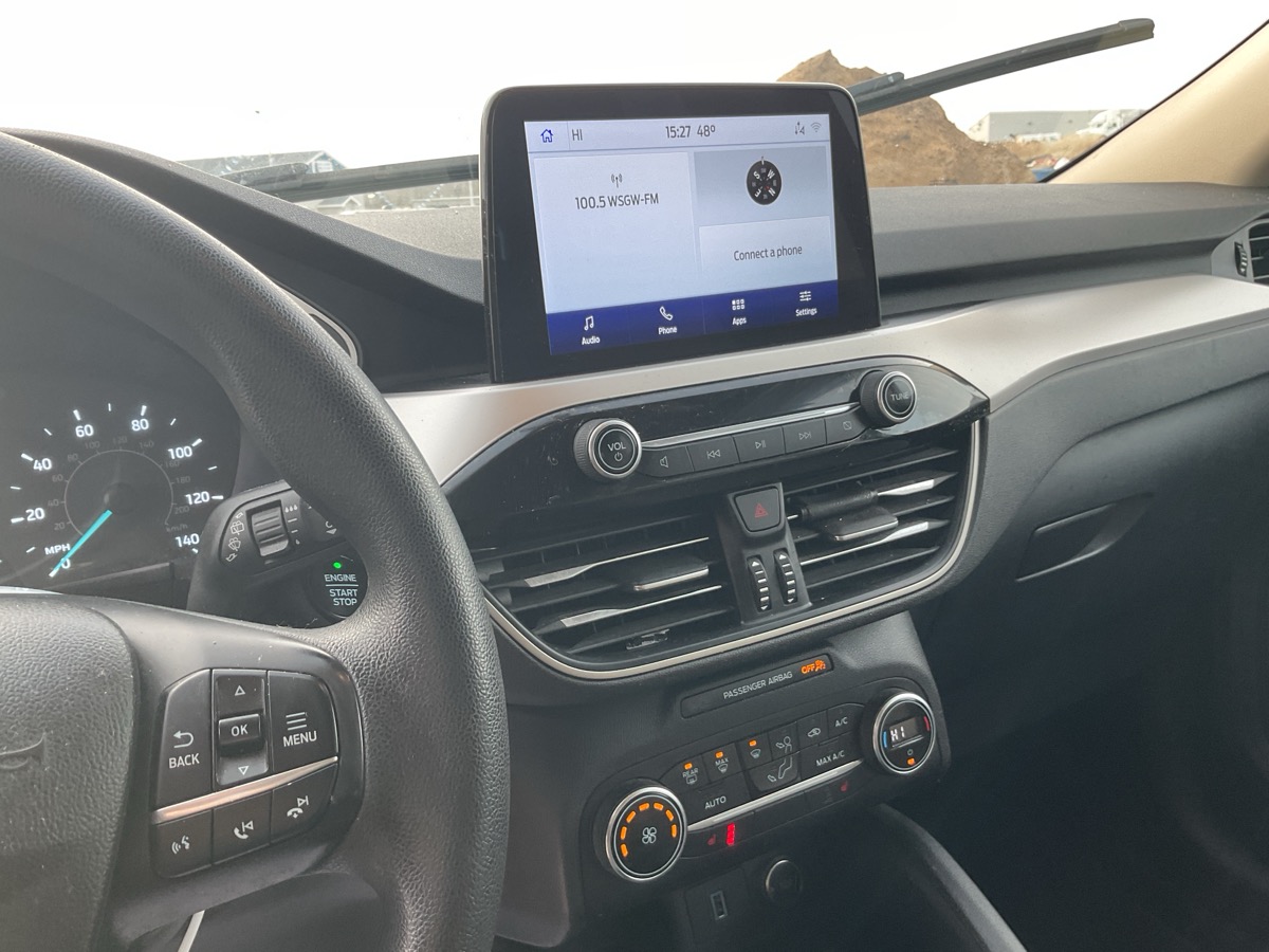Steering wheel alignment is off.
